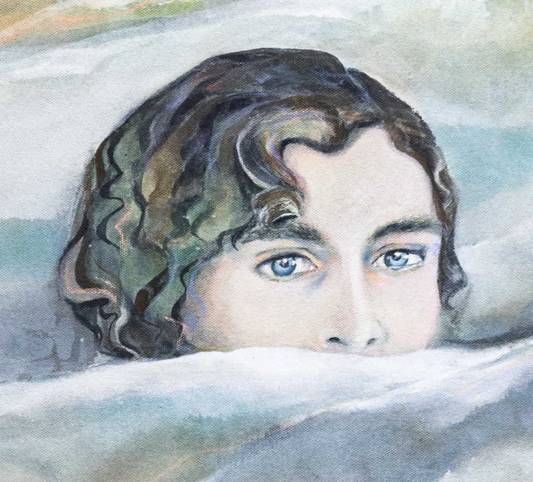 Theresa works with 100% cotton canvas stretched on solid wood stretcher bars.