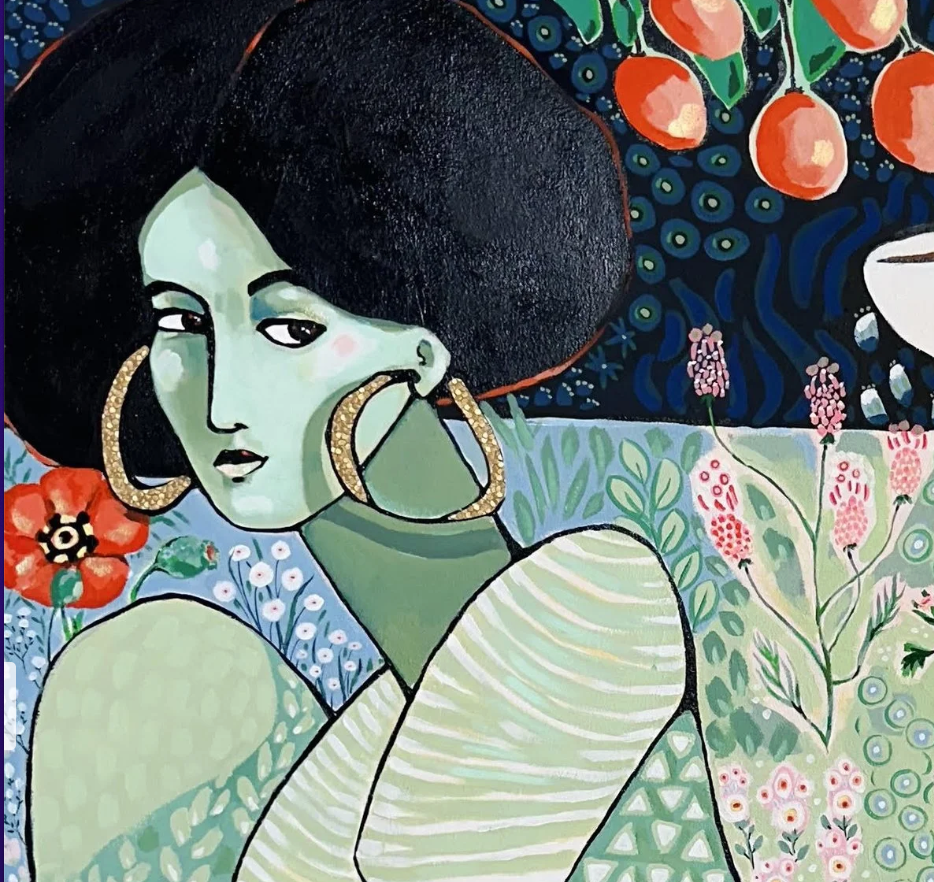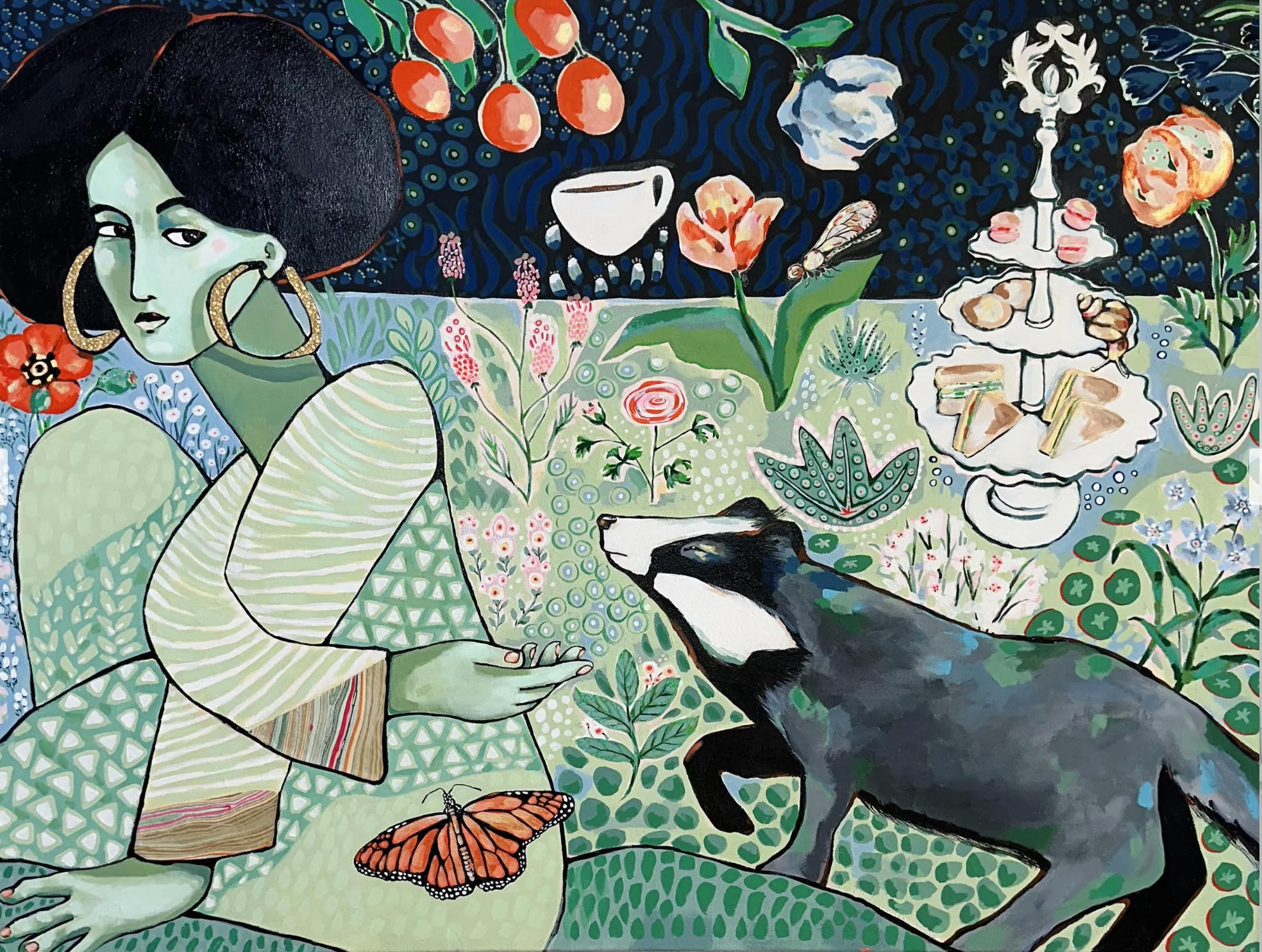 Theresa loves to work on commission pieces that reflect your color palette and people/pets that you love.