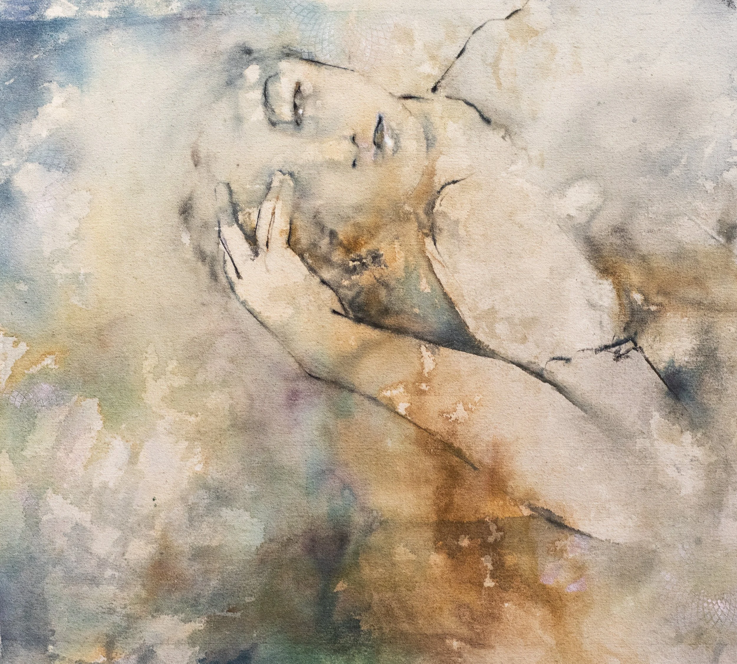 This series includes paintings of faes, with acrylic inks on raw stretched canvas.